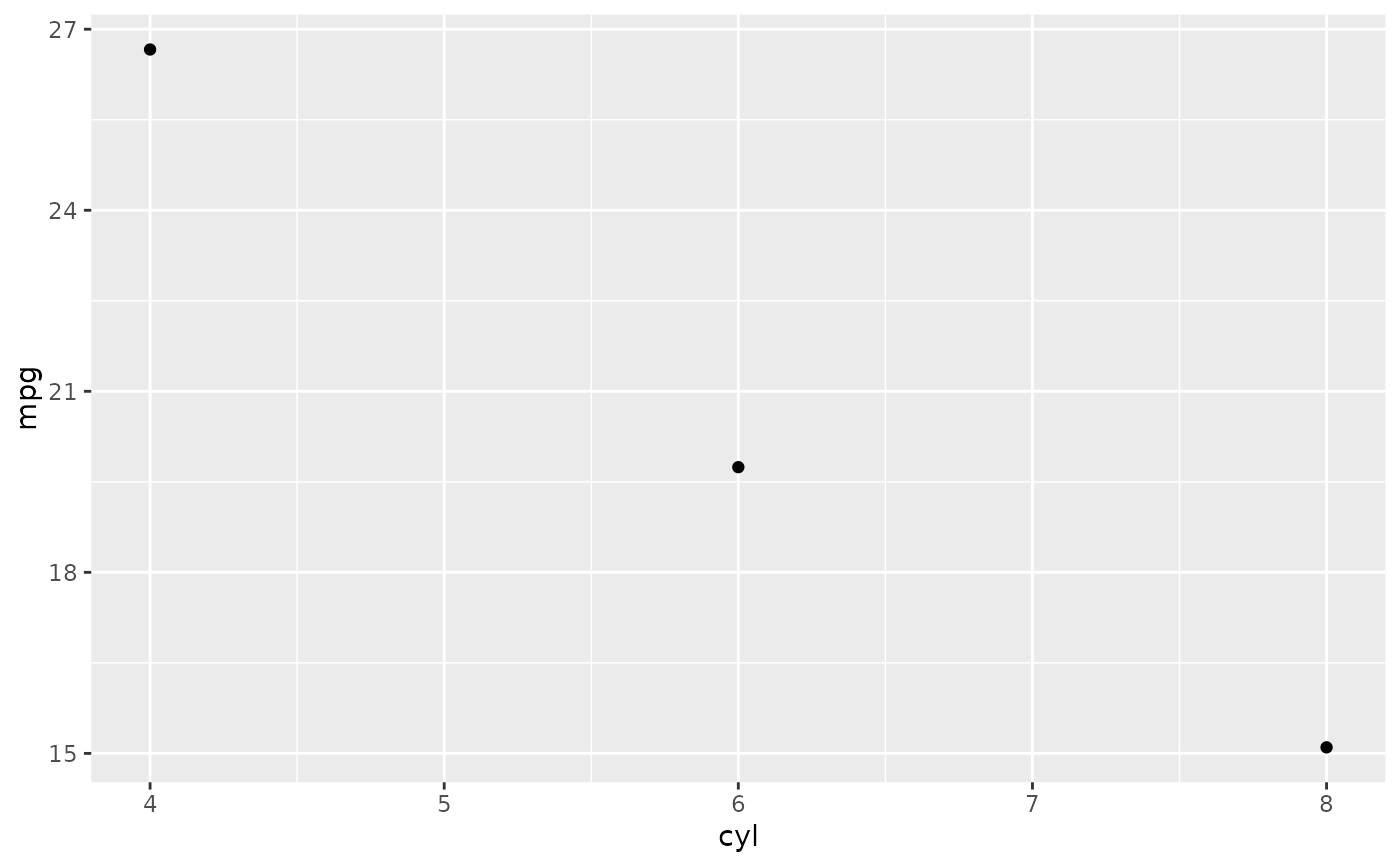 d <- ggplot(mtcars, aes(cyl, mpg)) + geom_point()